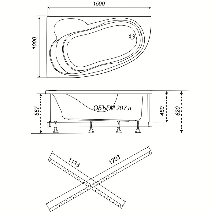 Акриловая ванна «Кайли», относится к серии ванн оригинального типа. Купель расположена по диагонали, что увеличивает ее длину. Внутренняя поверхность ванны расширена в области плеч, а с другого края сужена. Принимать душ в этой ванне гораздо удобнее, чем в обычной прямоугольной ванне. Она выполнена из современных материалов, высочайшего качества. В отличии от эмали, акрил всегда теплый и гладкий на ощуп. Дно с рифленой массажной поверхностью, препятствует скольжению даже в мыльной воде. Ванна обсолютно устойчива, ее каркас выдерживает тройную нагрузку и надежно фиксирует не только дно, но и бортики. Широкая, анатомичная спинка, позволит занять наиболее комфортное положение. В углу ванны расположено сидение в котором вы можете принимать душ.