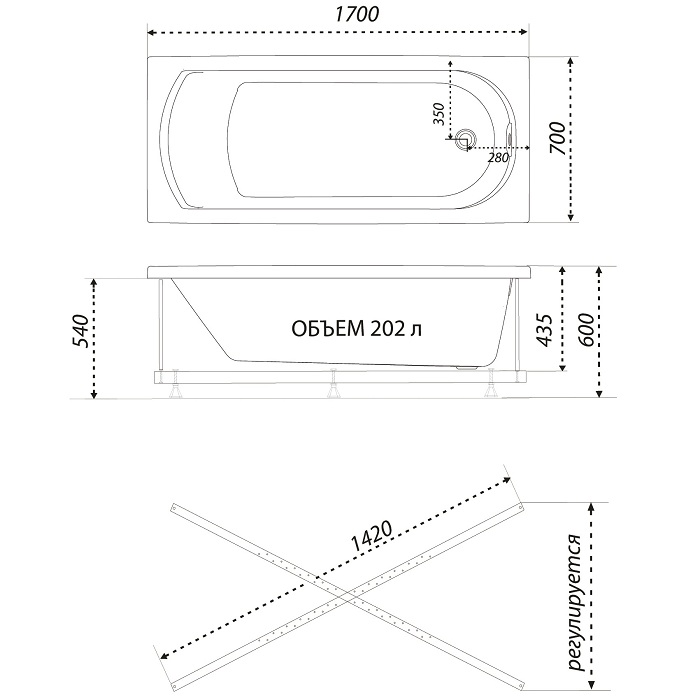 Ванна Дюна 170 имеет практичный дизайн и классические размеры, которые были разработаны специально для ванных комнат стандартного размера. Оригинальный дизайн этой модели не сможет оставить равнодушным никого.