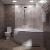 Утолщение борта с обеих сторон сидения позволяет, расположить на нем все необходимое, либо дополнительно установить смеситель. Форма подголовника на ванной позволяет установить дополнительно как обычный полиуретановый подголовник, так и подголовник на хромированной поддержке. Утолщение борта в центре ванны на внешней стороне, позволяет, установит узлы управления дополнительным оборудованием. Именно это утолщение борта и дало возможность установки слива перелива без добавления объема переднего экрана. Рисунок дна, максимально снижает риск получения травмы во время приема ванны.