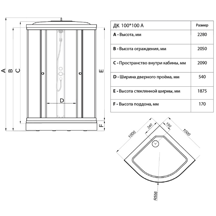 Душевая кабина Лайт 100*100*228 А